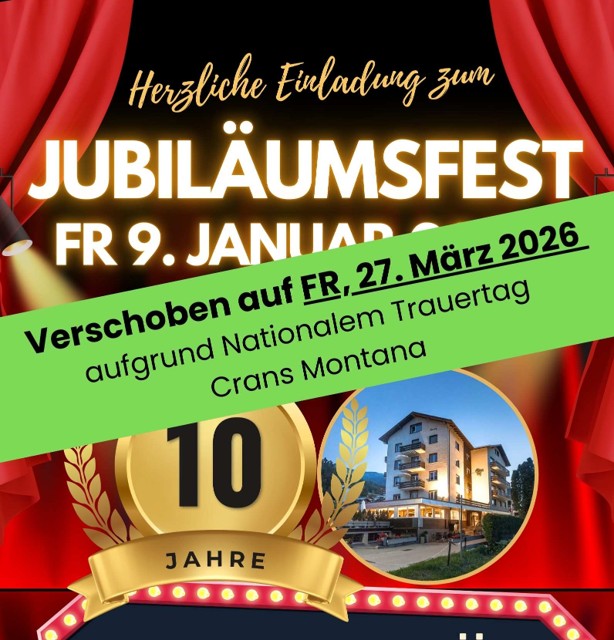 Musik heisst Lebensfreude pur – genau dies soll unser Hotel versprühen. Von Jazz über Country, von Volksmusik bis zum Schlager bieten wir für Musikliebhaber verschiedener Stilrichtungen regelmässig Anlässe, bei denen Sie das Tanzbein schwingen oder einfach entspannt die Musik geniessen können. Gemütliche Musikabende in unserer Gaststube, Konzerte mit Kulinarik in unserer Eventlocation „Mad Moose“ mit nationalen und internationalen Künstlern, Musikevents mit Feinem vom Grill auf unserer grossen Sonnenterrasse, romantische Dinners mit musikalischer Begleitung und vieles mehr — unser Konzept bietet für jeden ein passendes Angebot! Unser Musikprogramm aktualisieren wir jeweils mit neuen Events, welche auf dieser Seite jeweils aufgeschaltet werden.